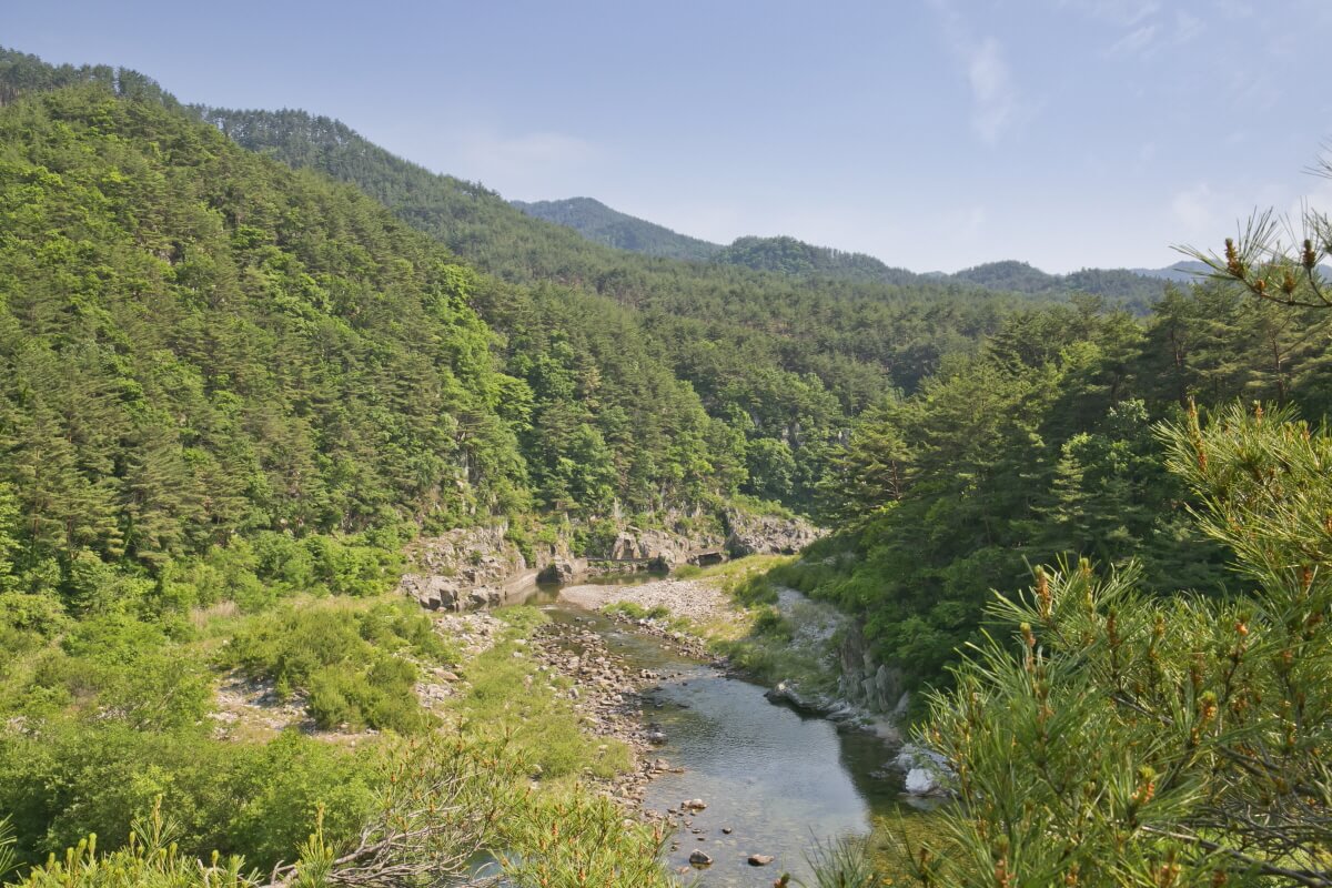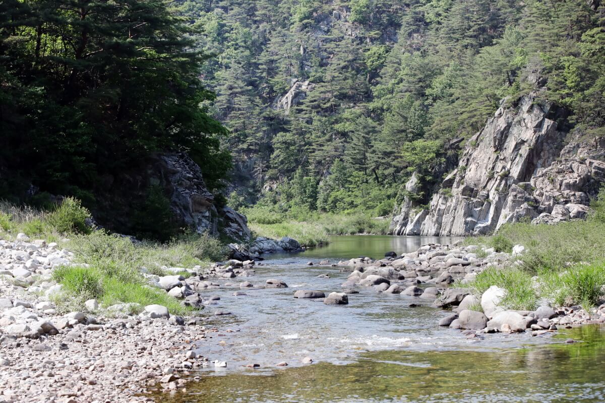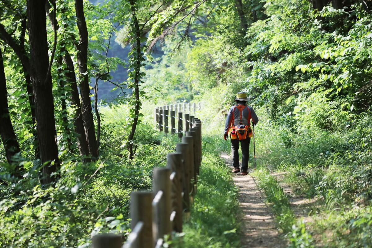 유유히 흐르는 맑고 푸른 물, 상쾌한 공기, 깎아지른 절벽 그리고 촘촘히 메워진 측백나무와 소나무들을 온몸으로 느끼며 그저 천천히 걸으면 된다.