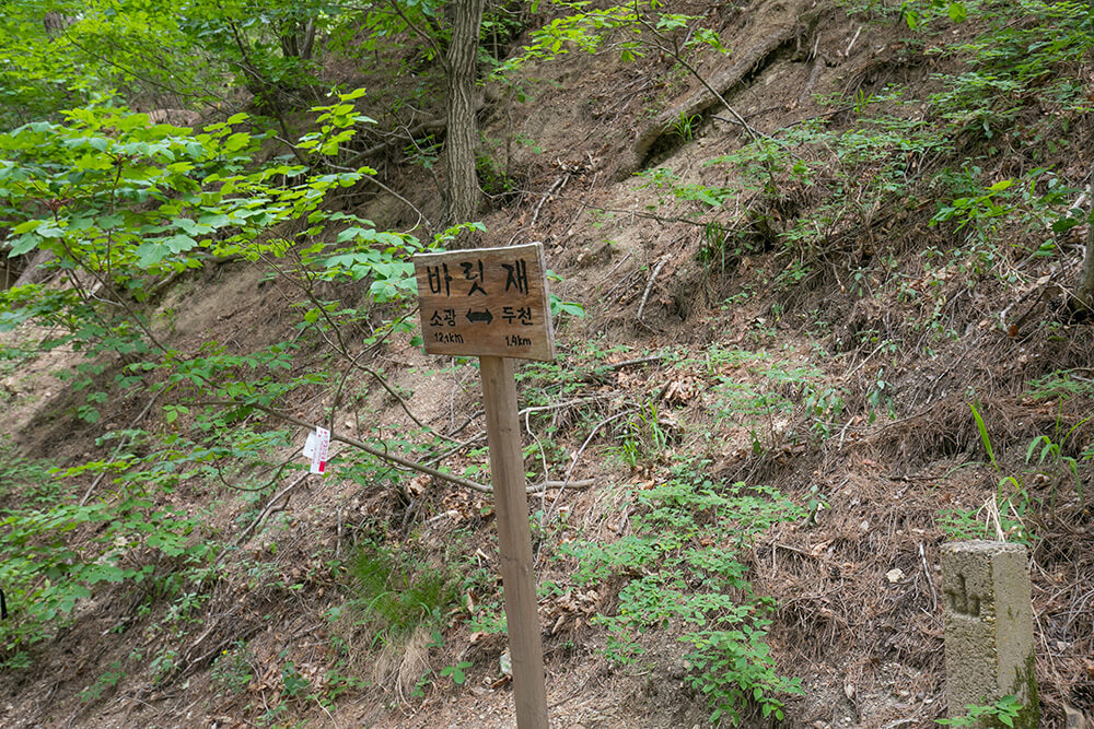 두천1리 - 바릿재(1.2km) – 장평(1.8km) – 찬물내기(6.5km) – 샛재(7.8km) – 대광천(9.8km) – 저진터재(12.2km) – 소광2리(13.5km)소요시간:약 7시간