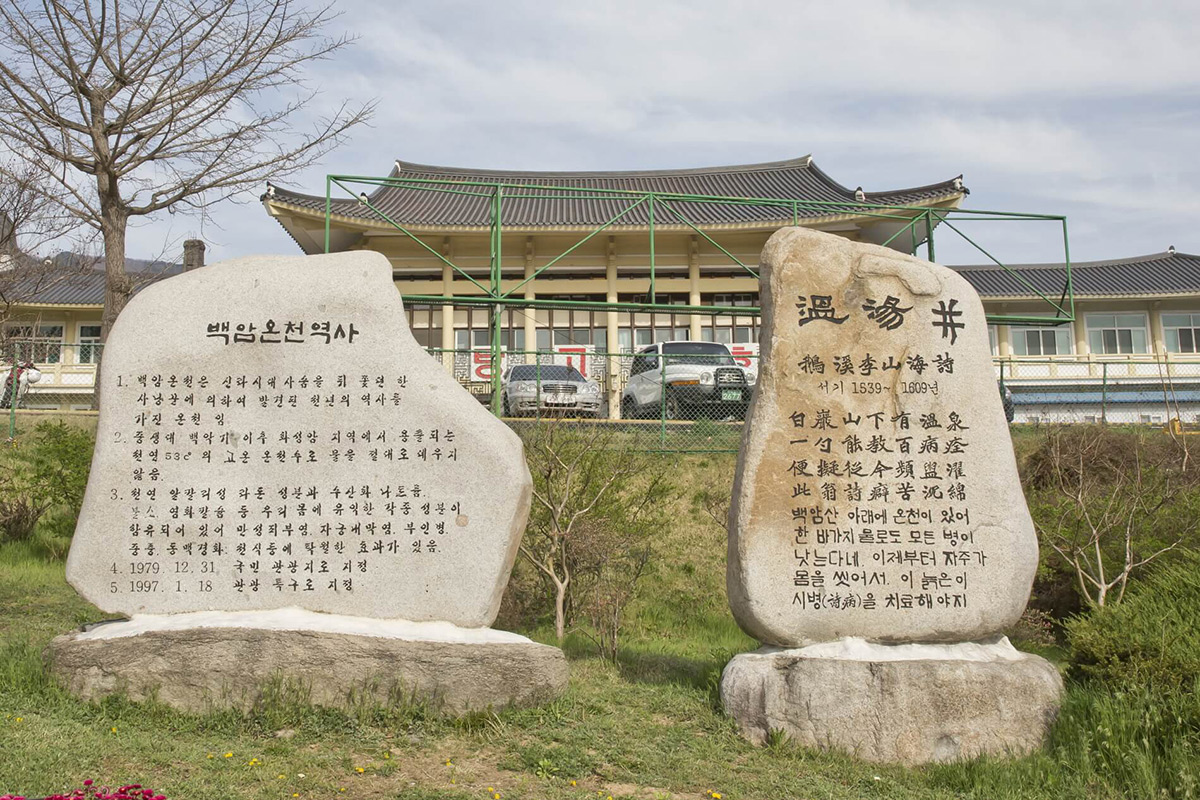 온정면 온정리, 그 지명에서부터 넘치는 더운물이 느껴지는 백암온천의 명성은 천 년의 세월동안 이어지고 있다.