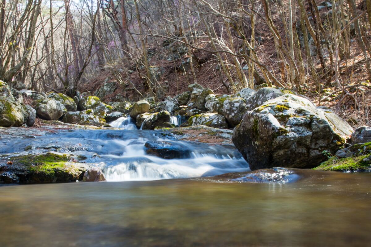 물의 깊이와 세기에 따라 달라지는 색과 소리의 조화로 신선계곡의 아름다움을 더욱 풍성해진다.
