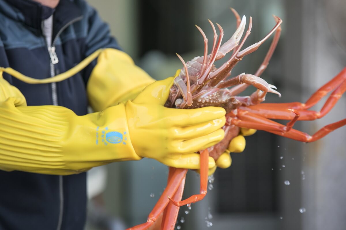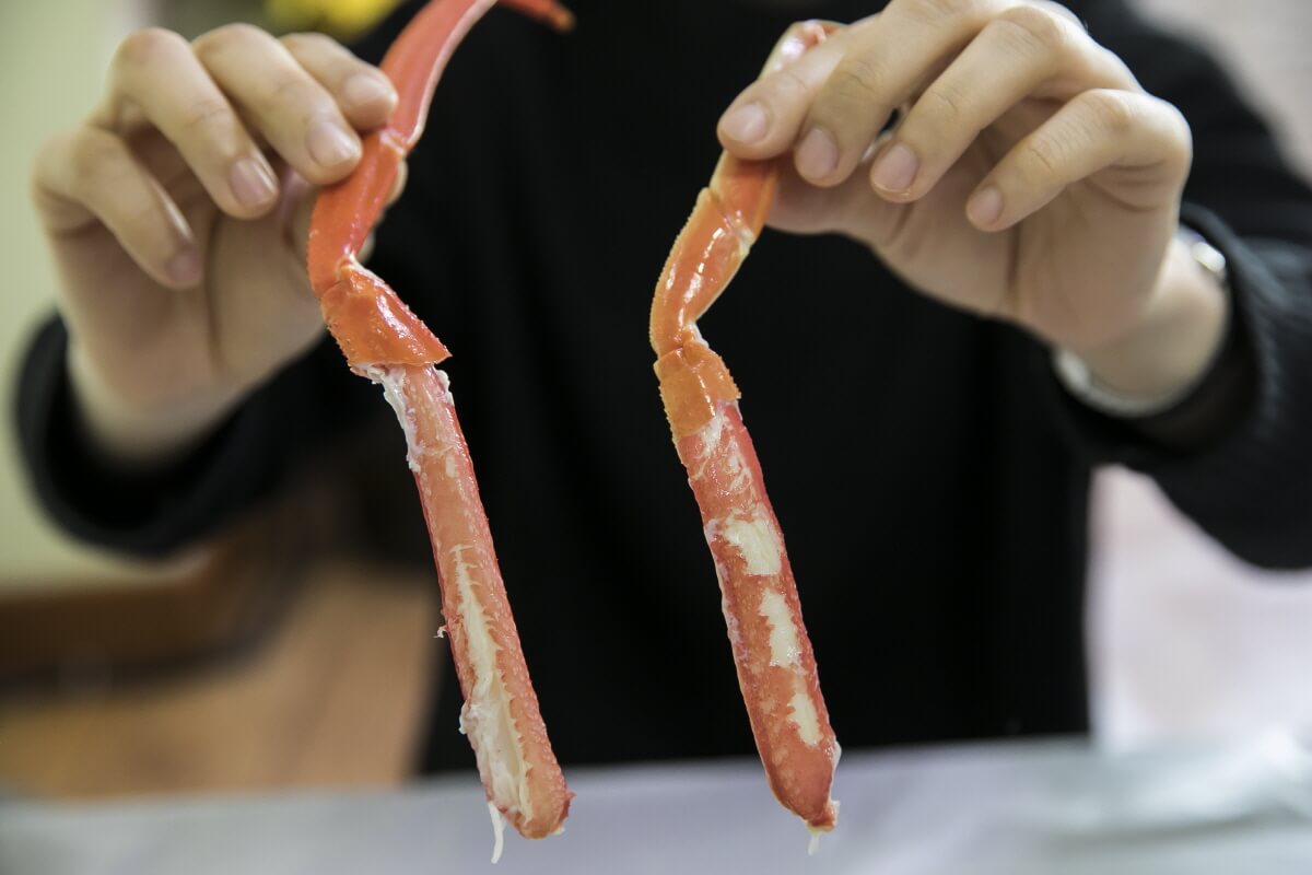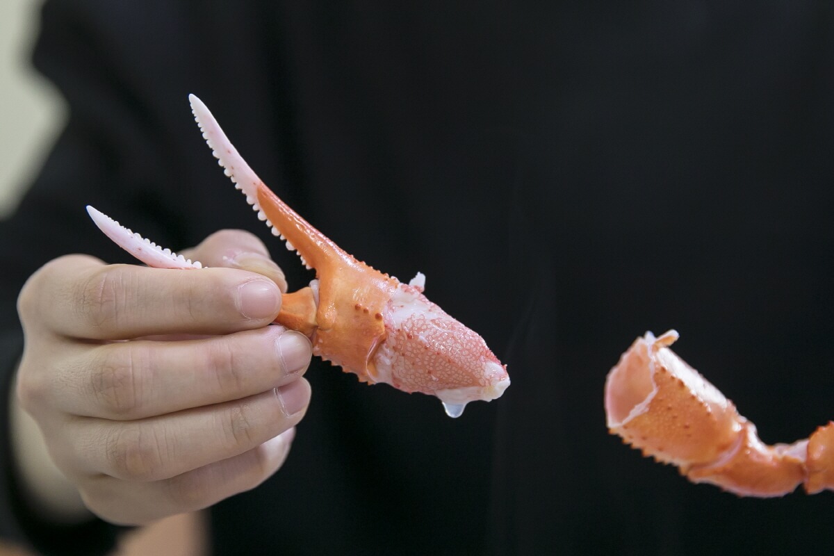 쪄낸 대게를 먹을 때는 양손만 있으면 된다. 껍질이 연해서 집게발을 제외하고는 가위 없이도 손으로 쉽게 찢을 수 있다. 하지만 홍게라고도 부르는 붉은 대게는 껍질이 단단하니 가위가 필수이다.