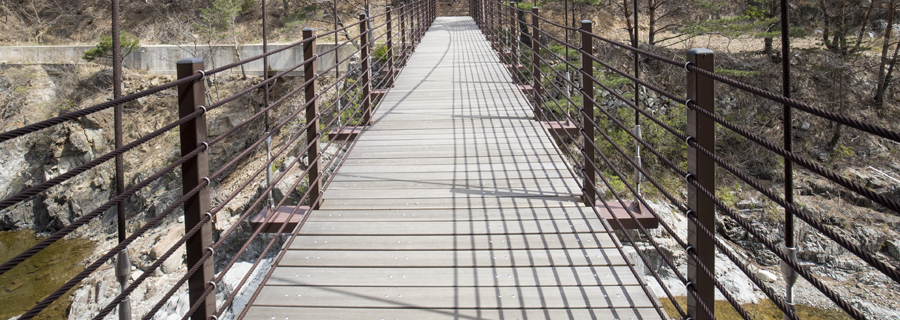 Deokgu Valley is a valley from Eungbongsan Mountain (as known as Maebongsan Mountain) to Deokgu-ri where hot spring is. On the way, Seonnyeotang, Okryudae, Mureung, Hyungjae Fall etc are forming the background. Especially in the middle of the valley, Yongso Waterfall has a trail of wriggling dragons on it, and water falls pouring over it. As the hot spring leaks into the valley, you can feel the warmth of the river. The 4km long trail is well maintained, and the 12 bridges, including the Golden Gate Bridge, made based on the world famous bridges, are another highlight. Inside the valley, on the side of hot spring where natural spring pours, there is a hot spring foot bath for relaxation and relieving fatigue.