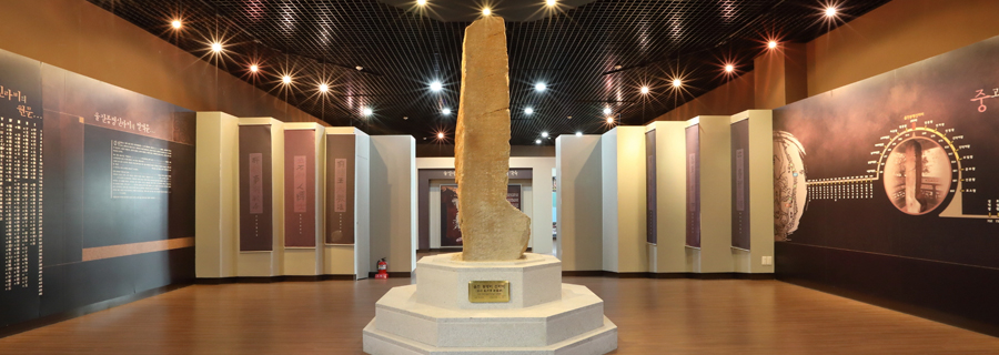 This plate is made of ivory white gneissoid granite and its size is 204cm high and its overall shape is amorphous close to trapezoid. The inscription is carved on the front face of the natural stone, but it is estimated to have been erected in 524 (11th year of King Beopheung of Silla Kingdom), although it is hard to read because it is worn with 399 characters. The inscription shares a characteristics of a law inscription, written about serious incident occured in Uljin province some time before the plate was constructed, incident of casting fire and surrounding the castle, having Silla central government involving large number of military to quell down the situation, and as a post-processing for the incident, King Beopheung and his 13 governors held the six viscera meeting, sentencing 60 and 100 beat with cudgel and promoting the local people after sacrificing striped ox(brindled cow) so that these kinds of incident never come across again.