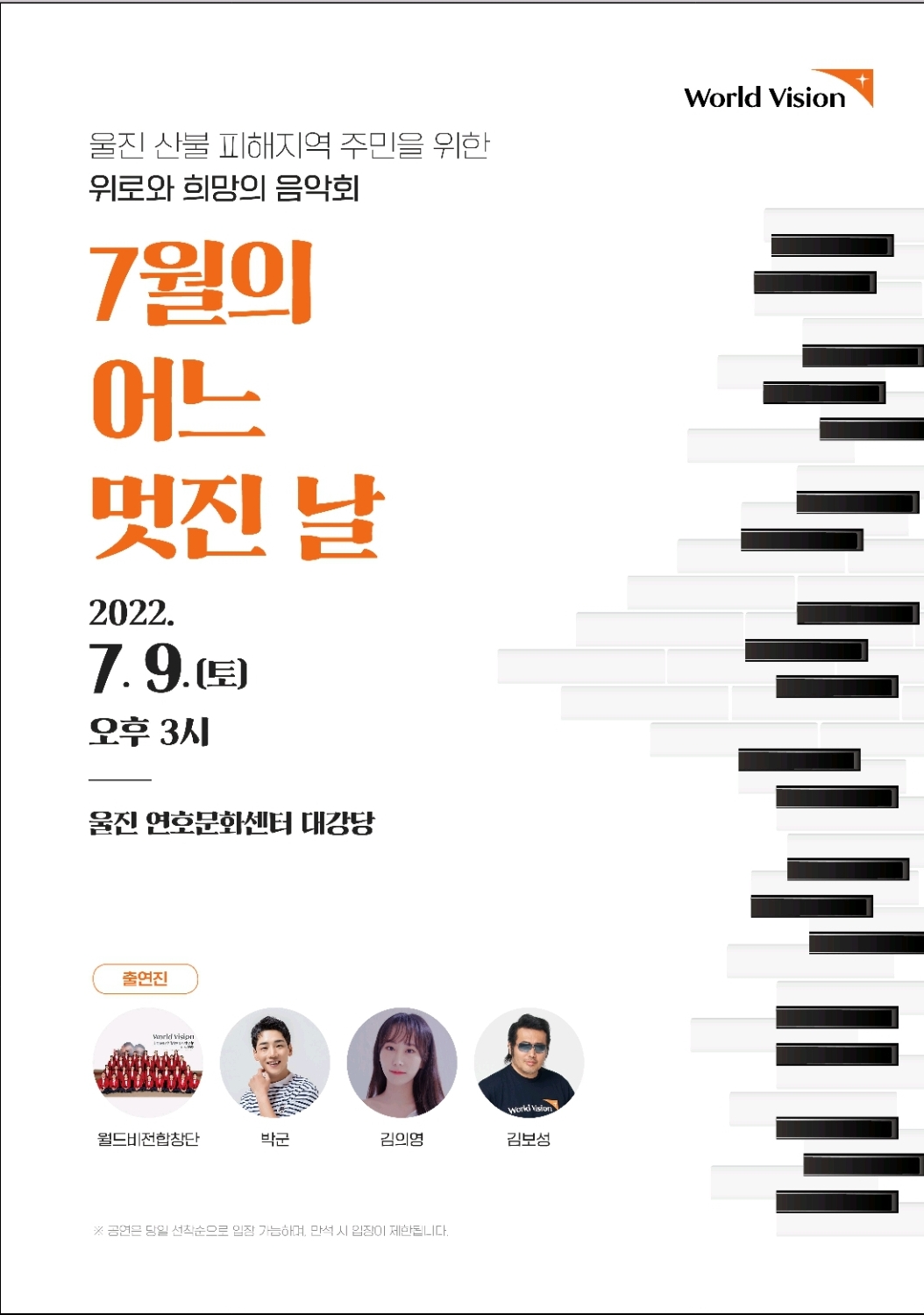1. 행 사 명: 울진 산불 피해지역 주민을 위한 위로와 희망의 음악회 7월의 어느 멋진 날